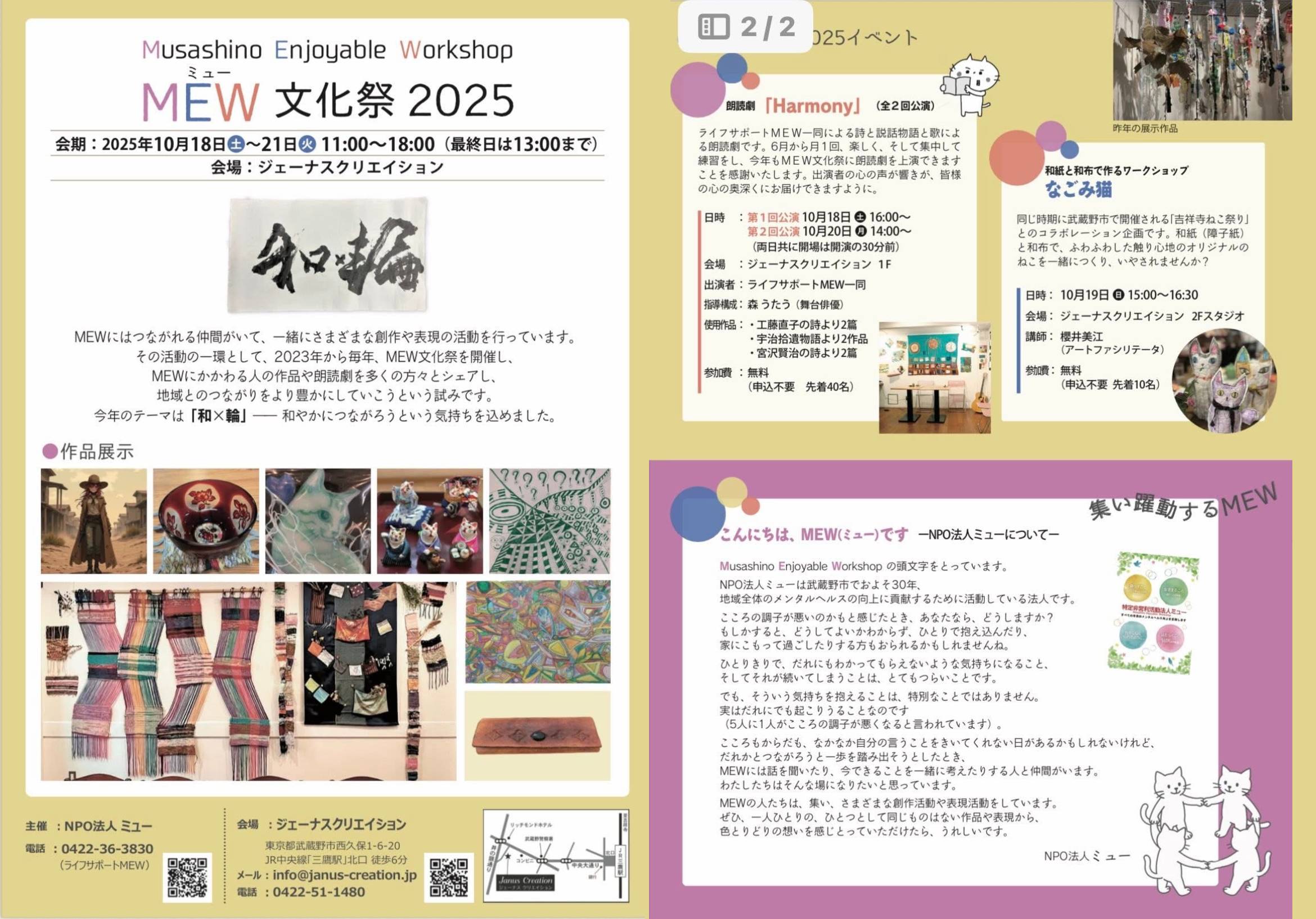 手作りアートの展示と私の指導・構成による朗読劇を上演します。